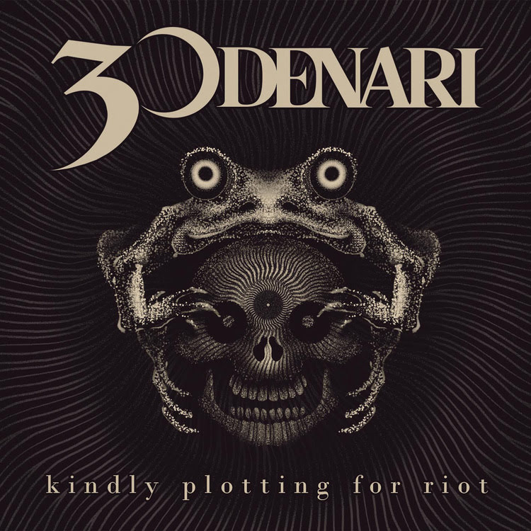 La band 30 DENARI annuncia l’uscita del suo album di debutto, “Kindly Plotting For Riot”, prevista per il 24 aprile 2026. In occasione dell’annuncio viene svelata anche la copertina ufficiale, realizzata da Crez Adrenalink Dojo, cantante della band e talentuoso tatuatore, che ha saputo trasformare in immagine l’estetica e le intenzioni artistiche del progetto.