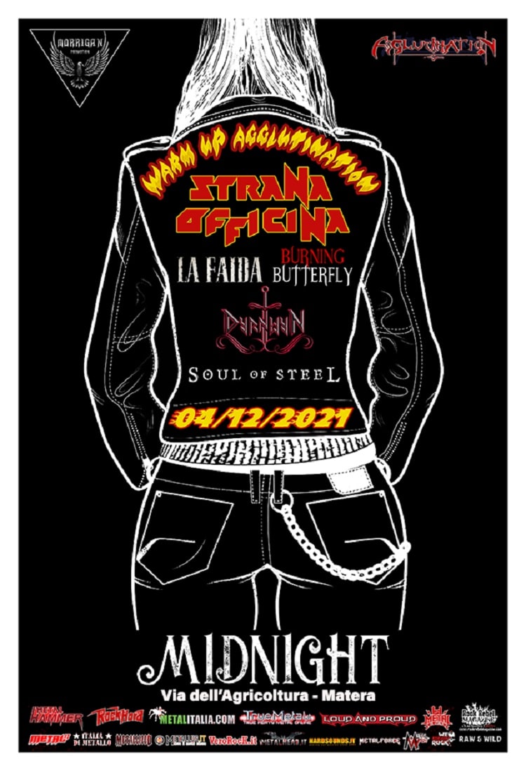 Nuovo cambio palco e a calcare le assi saranno i La Faida con il loro hard rock stradaiolo e selvaggio. La band nasce in quel di Los Angeles dall’incontro presso il mitico Whisky a Go Go di Ivan Grave dei Tracy Grave e Lexy, JJ, Max e Scar dei ReD RioT. L’imminente nuovo lavoro della band vede come produttore Pietro Foresti (premio Best Rock Produceer 2016) già produttore di personaggi del calibro di Tracii Guns ( LA Guns – Guns N’ Roses). E ora siamo finalmente giunti all’apice della serata con l’esibizione della STRANA OFFICINA!!! Nati a metà degli anni 70 per volere dei fratelli Cappanera la band è da allora la beniamina di ogni amante del hard’n’heavy made in Italy, ha prodotto diversi LP ed EP divenuti dei veri e propri cult album e sostenuti dell’amore incondizionato dei vecchi e dei nuovi fan. Il loro ultimo album intitolato “Law of the Jungle” uscito nel 2019 ha ricevuto ottimi riscontri di critica e di vendite ed ha visto la band impegnata sui palchi dei migliori Live Club e dei più prestigiosi Festival italiani tra cui proprio il nostro amato Agglutination dove la band ha conquistato tutti i presenti regalando uno show indimenticabile!!! E arrivato di nuovo il momento di battere il martello, non mancate!!!