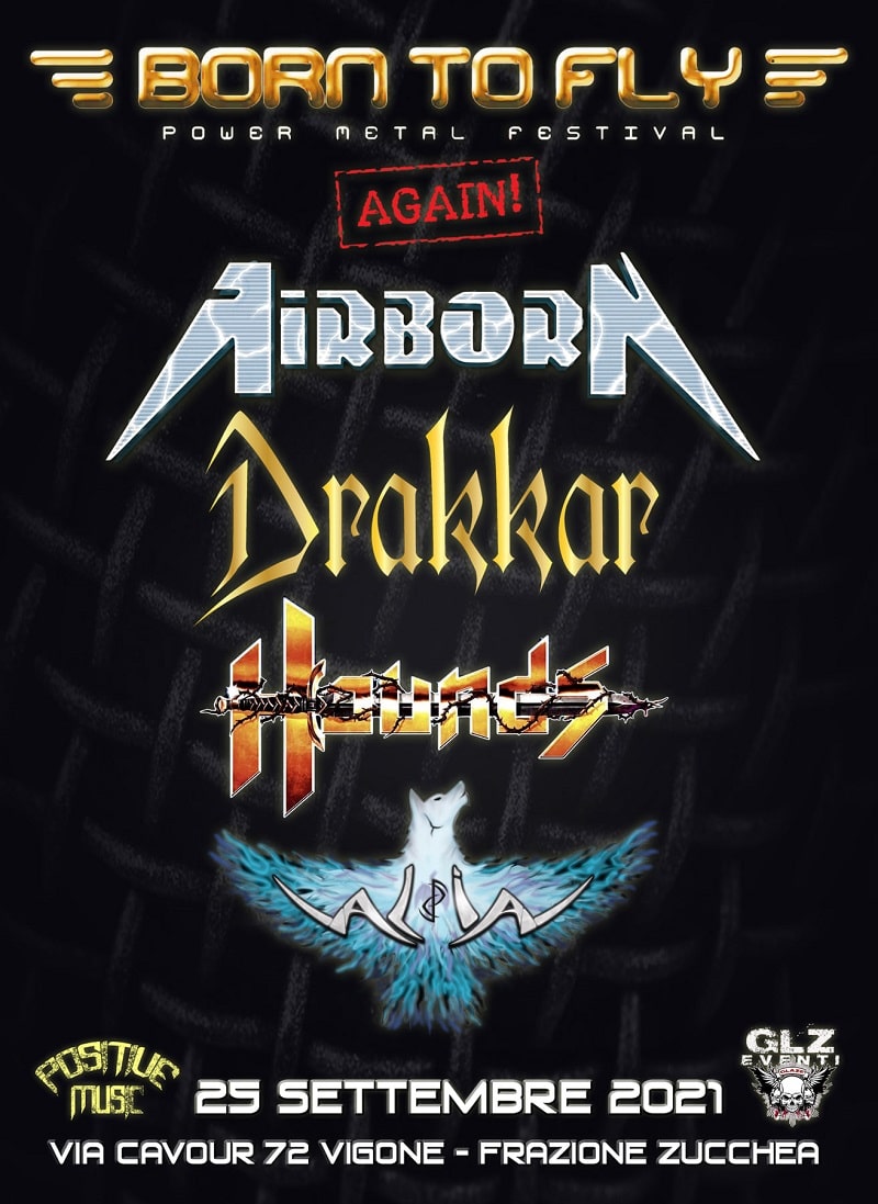 Dopo una pausa forzata di più di un anno e mezzo a causa dello stop imposto alle attività artistiche, i Torinesi Airborn annunciano il ritorno dal vivo. L’occasione sarà quella del Born To Fly – Power Metal Festival, da loro concepito e organizzato con la collaborazione di GLZ Eventi, giunto quest’anno alla IV edizione dopo quella mancata del 2020. Il festival si svolgerà sabato 25 settembre e vedrà per la prima volta un cambio di location, passando dalla tradizionale cornice del Padiglione 14 di Collegno a quella della Positive Music di Vigone (TO). Ancora una volta protagonista la scena Heavy/Power di Torino e Milano, con conferme di grande livello e novità dall’underground sabaudo.