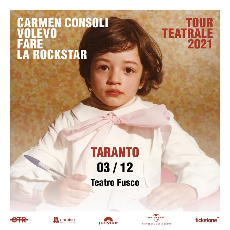 Taranto. Ecco che arrivano le prime certezze sulla ricca stagione invernale organizzata dal Comune di Taranto, con la collaborazione del Teatro Pubblico Pugliese, e del Teatro comunale Fusco. Chiuso l’accordo con il management di Carmen Consoli che salirà sul palco del Teatro Fusco venerdì 3 dicembre 2021 con una tappa aggiuntiva del suo ultimo tour: “Volevo fare la rockstar”.