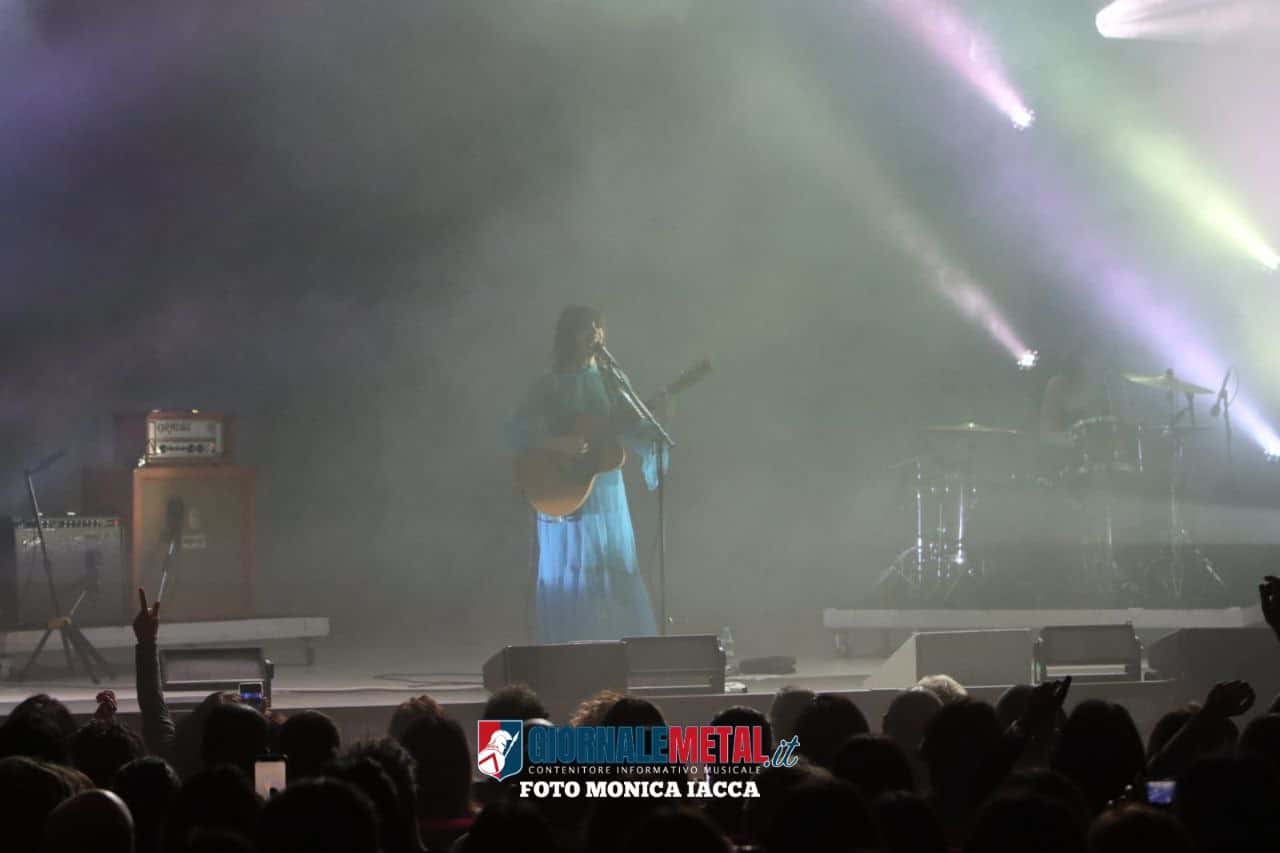 Un concerto durato oltre due ore, suddiviso in tre parti e preceduto da un prologo intimo e confidenziale, propedeutico per creare empatia con il pubblico. “Abbiamo avuto paura, nelle notti buie, abitate da diavoli e fantasmi, ma essere qui con il mio bagaglio di sogni, la luna e le favole che brilleranno sopra ogni cosa mi fa sperare che ancora tutto è possibile ed è arrivato il momento di tornare a vivere con una consapevolezza diversa. Più uniti, più propensi a cogliere l’importanza di tutto ciò che prima davamo per scontato. Dovremmo spalancare le porte e accogliere l’inverno perché forse, se conosci il freddo, puoi apprezzare il calore di un gesto”. Queste le parole di Carmen che introducono la prima parte del concerto, “Il sogno”, interamente dedicata all’ultimo album “Volevo fare la rockstar”.
