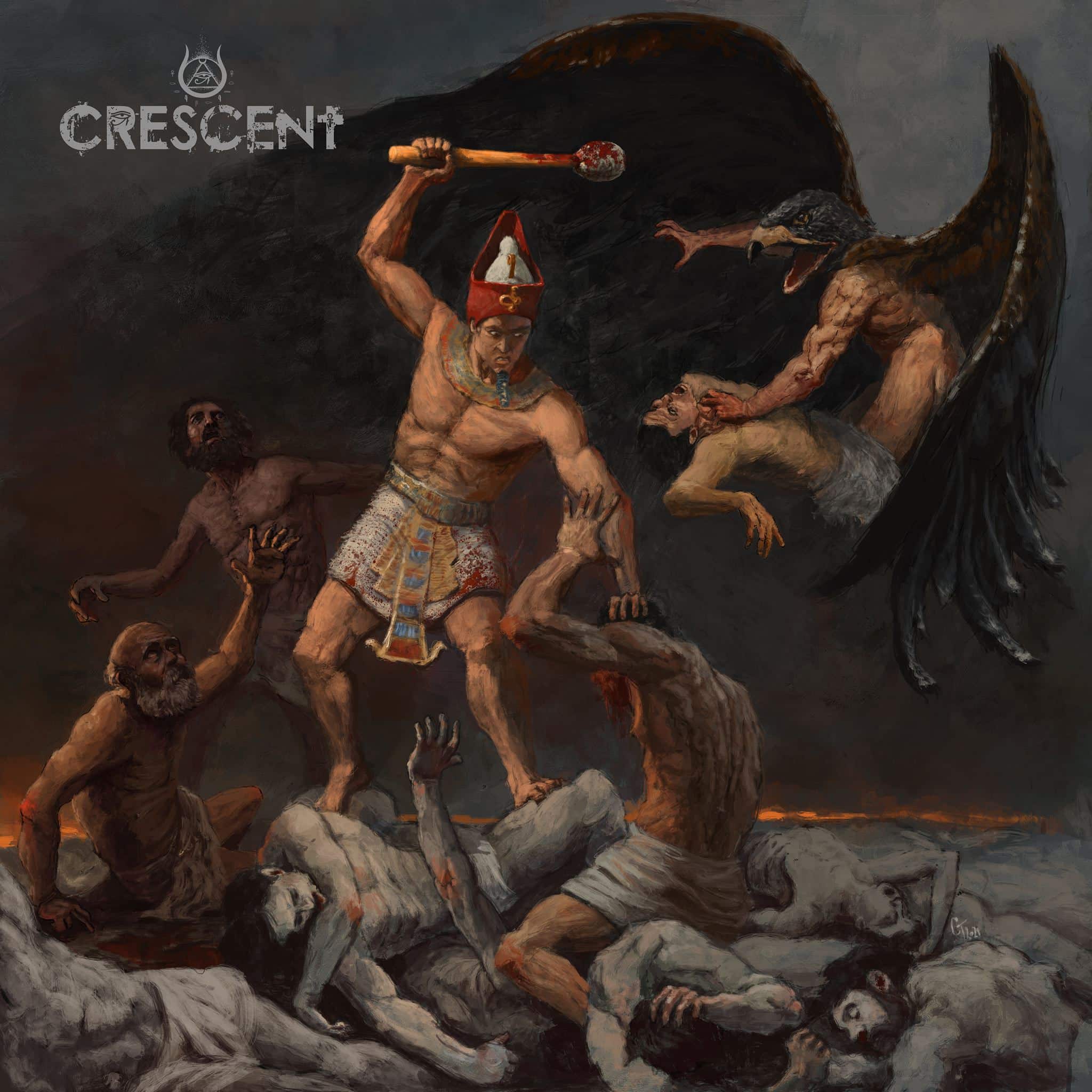 Questo simbolo lo troviamo nel titolo del terzo e nuovissimo album della death metal band egiziana Crescent, appunto The Fires of Akhet…un richiamo al susseguirsi nella storia di incredibili ascese e tragiche cadute…Il quartetto egiziano porta sulle scene in questo caustico 2021 quello che per molti gruppi dovrebbe essere la “prova del fuoco”, il fatidico III album…dopo un primo album che fissa l’archè di ogni artista e un secondo di consolidamento di pensiero e forma, arriva (per chi ci arriva) il terzo album, dove le esperienze accumulate durante gli anni devono formare un’espressione matura della propria proposta. La band ha metabolizzato alcuni tra i più grandi maestri della scena death metal mondiale (quei Dissection e Bolt Thrower, qui coverizzati con un pezzo ciascuno a bonus tracks) e anche i primi Death nella loro primissima forma più “canonica”. Quello che ci fa porre l’attenzione ai Crescent è la loro propensione a sonorità che cercano di ri-portare la loro proposta nella terra natia della band. Abbondante l’uso di scale Frigie maggiori e scale cosiddette “arabe”…quest’ultime generano accordi molto particolari e per ottenere le stesse sonorità senza dover ricorrere ad armonie troppo complesse solitamente si utilizza la scala minore armonica, che ci riporta agli standard del genere Metal. Lodevole quindi lo sforzo della band nel cercare di incastonare inserti lontani dal loro genere “puro” in un contesto di più ampio respiro sonoro. Le tematiche e le sonorità sono di tutto rispetto, ma il grande problema è che non siamo più nel ‘94…e una band come i Nile ha già creato un solco indelebile nel death metal mondiale da quando uscì nel 2002 con il devastante In Their Darkened Shrines (guarda caso il loro III album). La preparazione strumentale è degna di nota e il riffing è ottimo, ma manca ai nostri quel “qualcosa in più” che li porterebbe da band di nicchia a band che: fa la differenza. La produzione è davvero perfetta (registrato nei Woodshed Studios in Germania), Artwork molto interessante a opera dell’artista tedesco Khaos Diktator che reinterpreta, con uno stile molto simile a quello utilizzato dai neoclassicisti, una raffigurazione celeberrima nell’archeologica antica (la battaglia del Qadesh ad Abu Simbel, dove il Faraone Ramses II trionfò sull’esercito Ittitita di Muwatalli II).