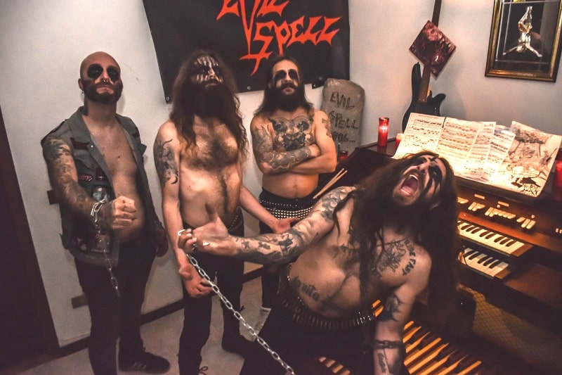• Idea di tutti, alla fine è un proseguimento del secondo disco. Se in Necrology siam fuori dalla chiesa, ora potete vedere cosa abbiamo fatto dentro. Paul crea un rito satanico sull’altare, Igor imbratta la navata con il nome del disco, GG scardina un crocifisso, Filo distribuisce legnate ai fedeli, insomma vandalizziamo una chiesa in puro stile Evilspell: goliardico, irriverente e portato all’estremo. Per quanto riguarda la realizzazione è stata fatta da DP ARTS Fumettista nostrano molto amico di Filo, essendo che non volevamo entrare nel banale abbiamo voluto un disegno fatto da chi ci conosce, e la sua mente con le nostre canalizzazioni ha creato questo art work, singolare sì, ma perche no, si vede che esce dagli schemi, non è la solita copertina, sarà un azzardo? A noi piace così, se non piace alla gente non ci interessa, anzi ci fa sempre piu capire che molti che ascoltano il nostro genere son pecoroni che appena fai qualcosa di originale storcono il naso… E pensare che il rock, il metal e soprattutto il metal estremo dovrebbe essere una rivolta alla banalità, un pensiero senza vincoli. Invece per molti non è così…
