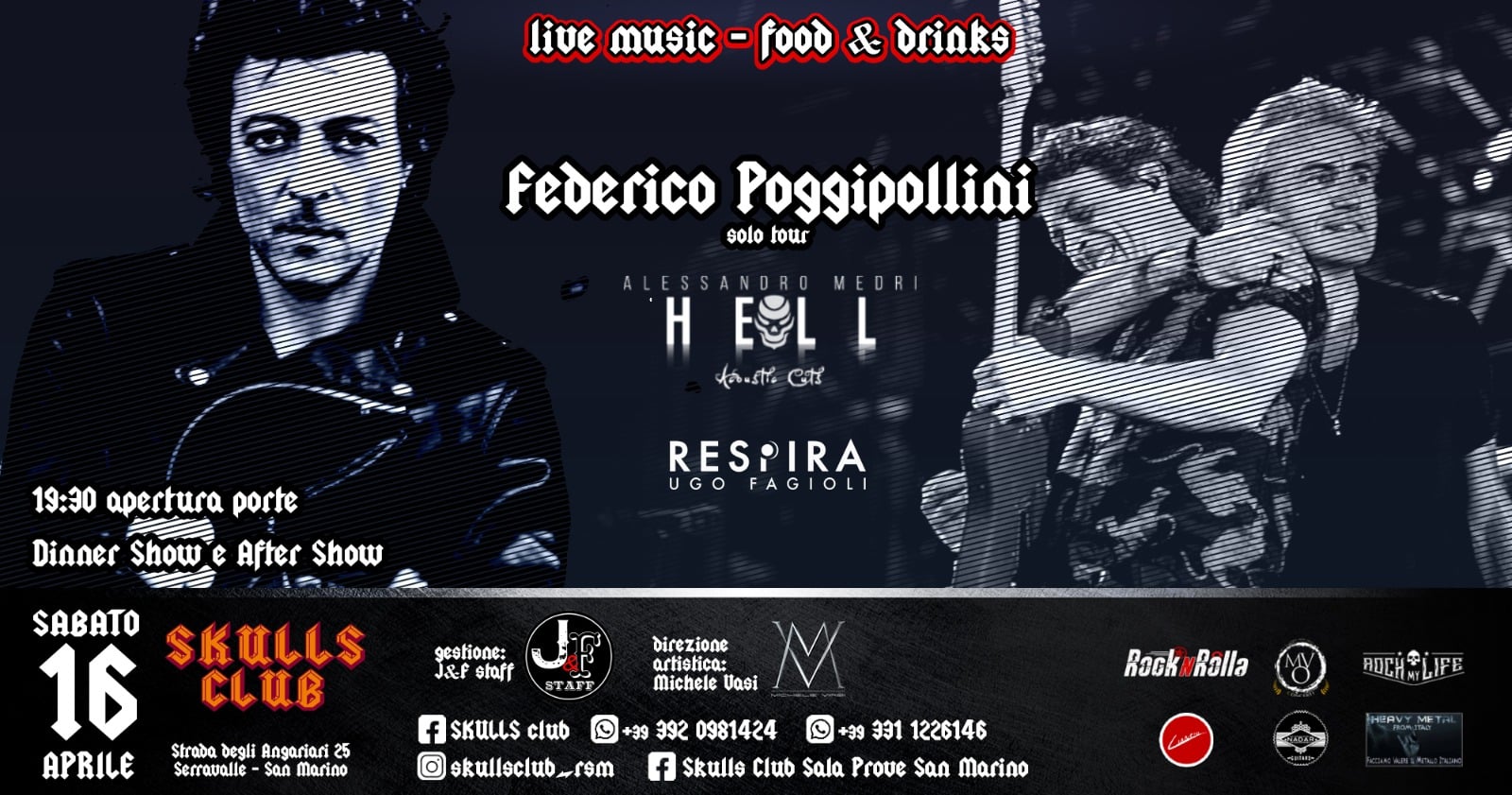 Il 16 Aprile, lo Skulls Club di San Marino avrà il piacere di ospitare Federico Poggipollini. Si tratta dello storico chitarrista che vanta importanti collaborazioni con artisti come Piero Pelù, Ghigo Renzulli e Luciano Ligabue, con il quale tutt’ora collabora.