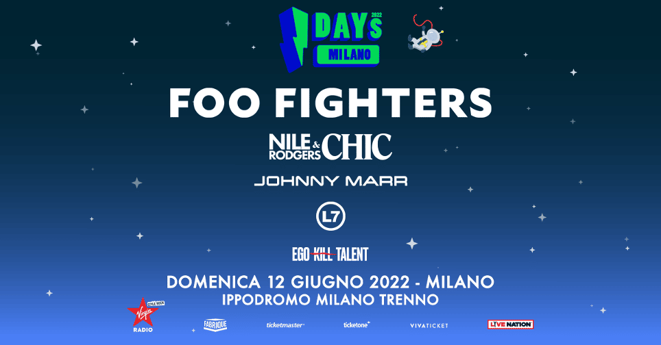 Johnny Marr, lo storico chitarrista del gruppo inglese The Smiths, e la band brasiliana Ego Kill Talent raggiungono sul palco i Foo Fighters per completare la line-up di I-Days domenica 12 giugno 2022.