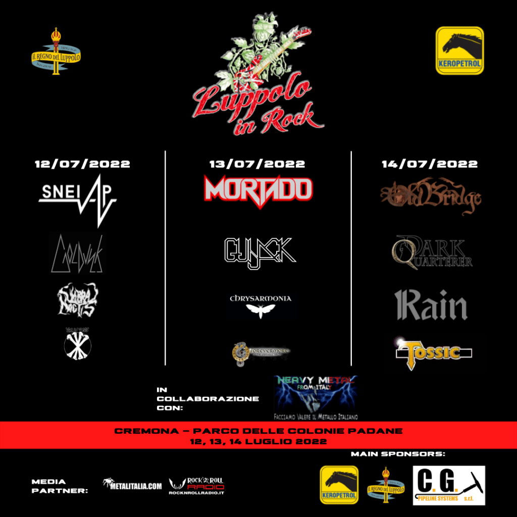 Luppolo in Rock 2022 raddoppia e aggiunge altre tre serate (12, 13 e 14 Luglio 2022) alle tre già in programma, dedicate interamente al metal ‘Made in Italy’ in collaborazione con “Heavy Metal from Italy: Facciamo valere il metal italiano” .