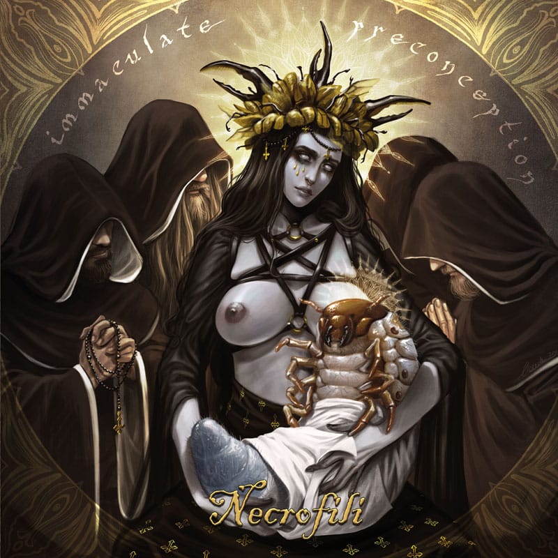 Progetto questo dei Necrofili, nato circa quindici anni fa. All’attivo al momento hanno due full-lenght e il nuovo Ep Immaculate Preconception. Il genere proposto dalla band è una sorta di death metal, crudo, a tratti melodico, basato su riff taglienti come rasoi, veloci e precisi. Dopo un paio di album si ripresentano quest’anno con cinque brani che continuano la loro personale visione della musica estrema. Ventidue minuti circa di durata dell’intero Ep in questione, dove i ragazzi mostrano che ci sanno fare molto bene, andando a proporre dei brani accattivanti, feroci e tirati. Si comincia con un interessante strumentale dalle tinte apparentemente calme, che introduce successivamente l’aggressione frontale di Infaithcted, brano molto interessante e ben strutturato, capace di riportare alla mente i gloriosi Rising Moon di Hate From Heaven, grande perla estrema del 1998. Trova spazio un brano, Campo de’ Fiori, cantato in italiano, dai toni meno esasperati del primo e che risulta anch’esso convincente. Con la successiva The Shapeless Thing si torna a pestare duro, dove la band chiama in causa i vecchi Necrodeath, brano che ci avvicina vero al chiusura di questo ottimo Immaculate Preconception. Army Of The Reaper è la perfetta canzone per chiudere in bellezza un lavoro ben fatto e sostenuto da ottimo gusto per l’estremo nudo e crudo, come quello che si poteva ascoltare proprio nell’underground di fine anni novanta. Tra l’altro tutti i brani hanno un particolare mood live, per il quale sicuramente sarà molto interessante vedere cosa la band ci proporrà durante le proprie esibizioni dal vivo.