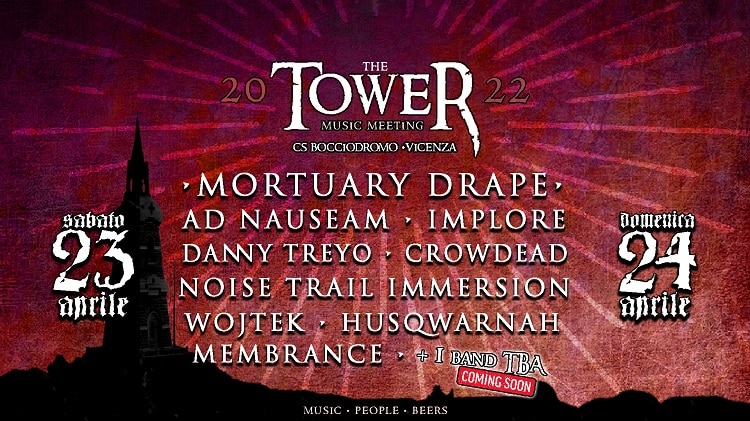 MORTUARY DRAPE • IMPLORE • AD NAUSEAM • NOISE TRAIL IMMERSION • DANNY TREJO • WOJTEK • HUSQWARNAH • MEMBRANCE • CROWDEAD + una Band da annunciare.