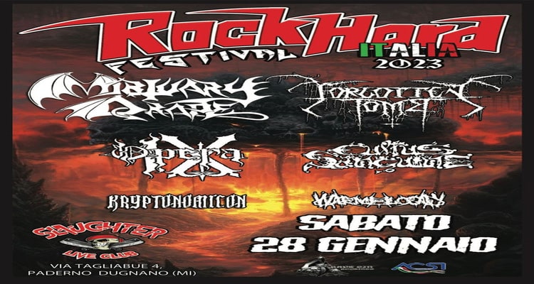 Quasi dieci anni dopo la quinta edizione, a grande richiesta torna il Rock Hard Italia Festival, e lo fa ponendo l’accento sulle proprie radici tricolori. Ad alternarsi sul palco saranno infatti alcuni dei più autorevoli gruppi che hanno contribuito a forgiare nelle fucine dell’Inferno la scena estrema del nostro Paese. Headliner della serata, che si terrà sabato 28 gennaio 2023 presso lo Slaughter Live Club di Paderno Dugnano (MI), saranno gli storici Mortuary Drape: seminali pionieri e maestri riconosciuti a livello mondiale del primigenio black metal, i cinque demoni guidati da Wildness Perversion non mancheranno di confermare la statura della loro leggenda. Un’eredità che nell’ultimo ventennio è stata raccolta e resa opportunamente personale dai Forgotten Tomb; considerato tra gli iniziatori del genere depressive black metal, il gruppo di Piacenza ha incorporato nel proprio stile profonde sfumature gotiche e doom, che danno il meglio proprio nel contesto live. E parlando di band storiche, non potevano mancare all’appello gli Opera IX dell’instancabile Ossian, con le loro sonorità sinfoniche ed aggressive in grado di riportarci all’epoca dorata per la contaminazione tra pesantezza e melodia, che tanti capolavori estremi ci ha regalato negli anni Novanta. Un percorso artistico non troppo distante, almeno nell’attitudine, da quello dei più gotici Cultus Sanguine, ancora freschi di reunion e determinati come non mai ad evocare atmosfere vampiresche e fataliste. Di più recente formazione i black/deathsters friulani Kryptonomicon, che tuttavia schierano tra le loro fila due membri dei veterani Karnak e non mancheranno di far valere il peso specifico della loro tecnica. Ad aprire la serata e scaldare adeguatamente il pubblico sarà il death metal furibondo dei Warmblood, con la carismatica batterista Elena Carnevali pronta a sciorinare ritmiche schiacciasassi.