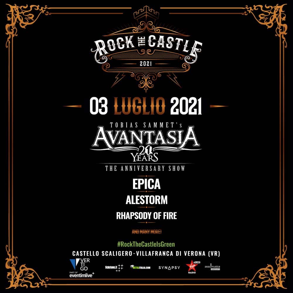 Dopo la notizia del posticipo di JUDAS PRIEST, si aggiunge una seconda ed importante conferma per il 2021 in casa Rock The Castle.Comunichiamo che, a seguito della situazione creatasi con la diffusione del coronavirus, AVANTASIA hanno posticipato a sabato 03 luglio 2021 la data italiana inizialmente prevista per il 04 luglio 2020 al Rock The Castle (Castello Scaligero c/o Villafranca di Verona).