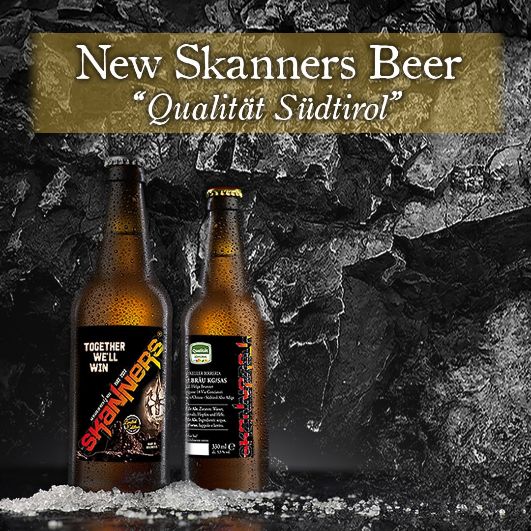 Gli SKANNERS, pioneri del’heavy metal tricolore, lanciano sul mercato una nuova birra personalizzata. Prodotta da Gasslbraü Kg/Sas a Klausen/Chiusa in Südtirol/Alto Adige è una “pale ale” dal colore leggermente ramato, con un leggero retrogusto “british”;