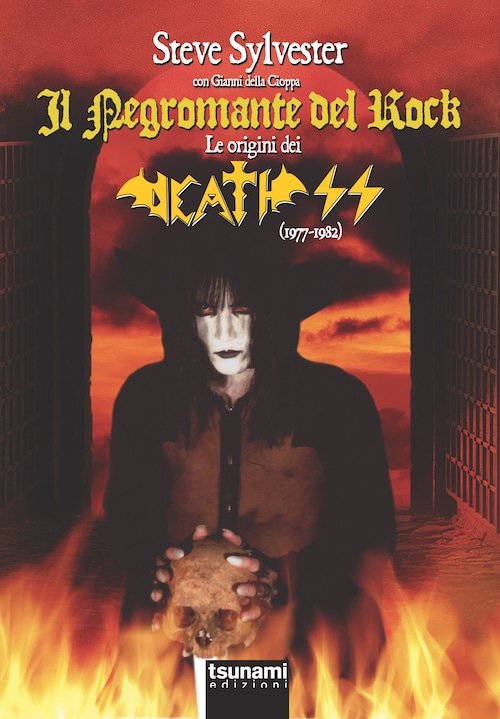 Era il 2011 quando uscì la prima edizione di questo libro e per Steve Sylvester si era chiusa una fase fondamentale della sua vita. I Death SS da qualche anno avevano rilasciato The Seventh Seal e, d’altro canto il titolo non era affatto casuale, il “patto” era stato chiuso. Era quindi un periodo transitorio per la band, che veniva rimessa in moto occasionalmente per qualche pubblicazione antologica o per qualche live celebrativo. Per il protagonista, al contrario, era un momento intenso e pregno di progetti che, dopo anni di gestazione, riuscivano ad ottenere il giusto spazio… Gli Opus Dei (poi W.O.G.U.E), i Sancta Santorum, l’episodio 666 di Coliandro, per citare i più importanti. Tra altri impegni come attore e la finalizzazione di altre passioni, come quella per la cucina vegana, dopo anni di richieste, che puntualmente si presentavano quasi ad ogni intervista, venne il momento de Il Negromante Del Rock. L’obiettivo era quello di far luce sugli anni più misteriosi della band e di Steve stesso, quelli ammantati di leggenda ma anche soggetti alle dicerie insensate di buontemponi e malpensanti. Scritto con la preziosa collaborazione di Gianni Della Cioppa, obiettivamente uno dei migliori giornalisti musicali italiani (…a parte la smisurata competenza, la sua autentica passione verso il metal e verso la figura di Steve Sylvester si sono rivelate davvero armi vincenti), e pubblicato dalla tenace Crac Edizioni, quello che venne fuori era un vero e proprio gioiello editoriale di ormai difficile reperibilità. Alla vigilia della pubblicazione di quello che sarà un tomo ben più corposo, che narrerà la storia dei Death SS dal 1987 ad oggi, giunge quindi opportuna la decisione di Tsunami di riproporne una nuova versione “rimasterizzata”. E’ subito evidente una diversa copertina… Questo particolare non è affatto uno specchietto per le allodole ma cela, a mio giudizio, un significato ben più profondo. Nella precedente edizione potevamo osservare uno Steve nudo con un serpente, in un immagine sì magico-esoterica, dopo aver dismesso i panni del Vampiro.