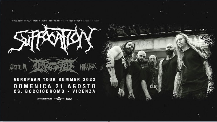 Trivel Collective, Avocado Booking, Year Zero Events, Orion Agency & Versus Music Project sono lieti di presentare Domenica 21 Agosto, sul palco del csBocciodromo di Vicenza, una tappa del tour estivo di una pietra miliare del death metal internazionale: i Suffocation!